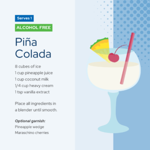 🍹Piña Colada: Blend pineapple juice, coconut milk, heavy cream, vanilla extract and ice until smooth. Serve with a pineapple wedge for garnish.