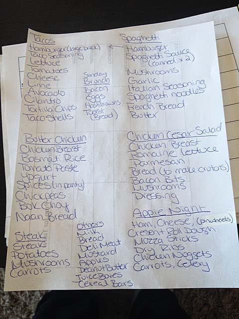 Sunday is meal planning and grocery shopping day. It just works best for my family but you are free to do it whenever works for you. I picked Sunday because by then, I have my kid’s schedules for the week ahead and can plan that right into the week. One of our boys is in hockey which means anywhere from 2-4 ice slots in a typical week. Those nights used to mean take out or fast food meals, but since learning how to meal plan and planning for those kinds of nights, we rarely have to resort to take out anymore and only have it if we plan it in. Sometimes take out just works best, like if we have to be at a hockey game at 6pm on a Wednesday in a town an hour away – that is just fine. Take out food has its place, but using it as an excuse not to cook on a busy night doesn’t have to become the norm (which is was in our house.)